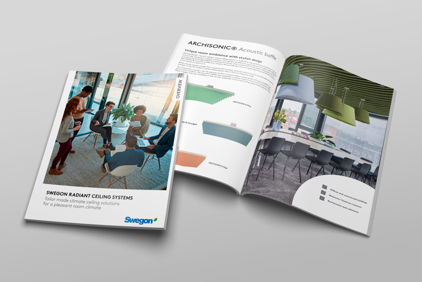Our brochure overview "Climate ceiling systems" is available as a PDF download - simple, quick and free of charge. Discover more about our tailor made climate ceiling solutions for yourself.