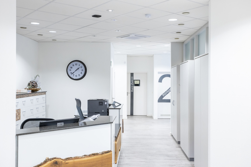 Aufgabe war es hier eine Physiopraxis mit ca. 130 m2 zu klimatisieren. Die Schwierigkeit oder besser gesagt Herausforderung war, dass sich die Quadratmeterzahl auf zehn kleine Behandlungsräume mit nur acht bis zehn Quadratmetern aufteilte. Zudem war es ein Bestandsgebäude, aus Wohn- und Gewerbeeinheiten; in Summe sechs Wohneinheiten. Das vorhandene Heizungssystem funktioniert jedoch nicht wirklich optimal und zuverlässig, daher suchte der Praxisinhaber auch hier nach einer Lösung die auch in den Wintermonaten ein wohlig angenehmes Raumklima schafft. Heutzutage spielt die Nachhaltigkeit eine immer wichtigere Rolle, das aktuelle Bestandsheizsystem ist eine Gasheizung. Hier hat der Praxisbetreiber nach einer effizienteren und kostengünstigeren Lösung auch für das Heizen gesucht. Zudem haben wir in der Praxis abgehängte Decken, welche optimal für Deckengeräte geeignet sind.