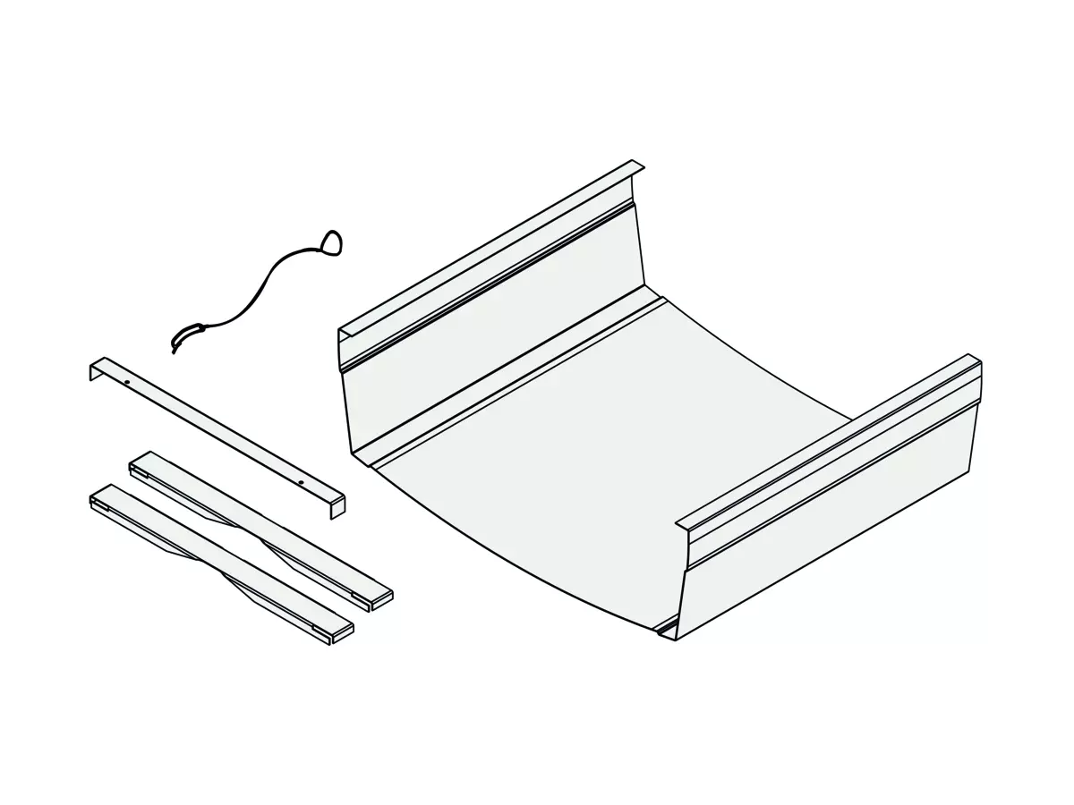 - La cubierta de conexión se coloca sobre la sección prolongada de la viga fría para ocultar las conexiones de tuberías.