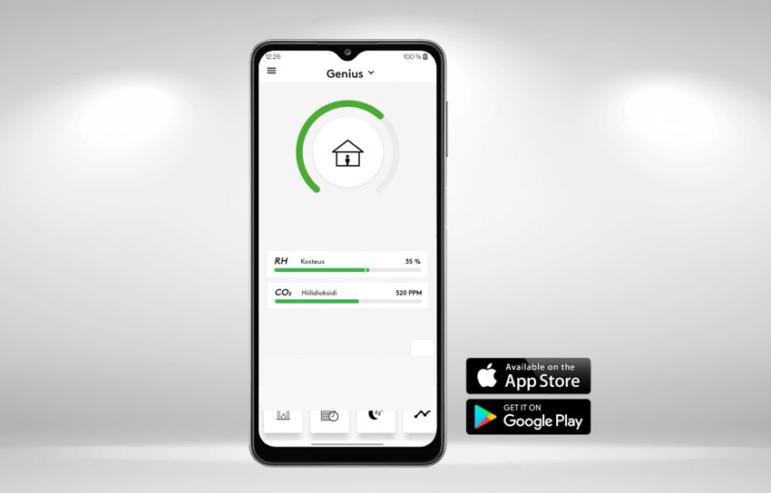 Kodin asukkaan sovellus jolla voi käyttää kaikkia käyttöpaneelin toimintoja etänä omalta älypuhelimelta. Sovelluksen avulla käyttäjä saa enemmän tietoa asunnon ilmanlaadusta ja hyödyllisiä ohjeita ja neuvoja asunnon ilmanvaihdon käyttämiseen (tarvitsee Swegon Genius -ohjauspaneelin).