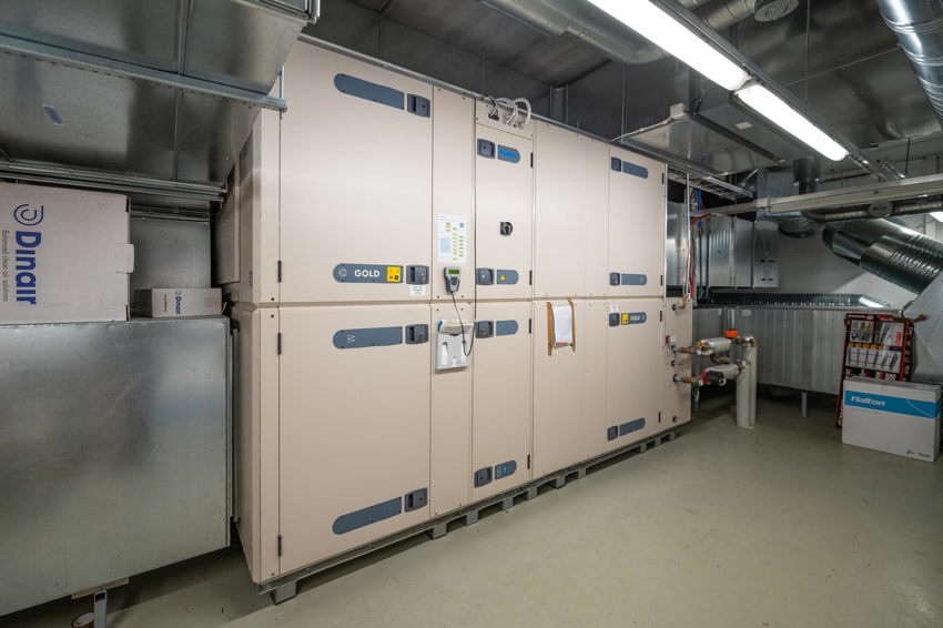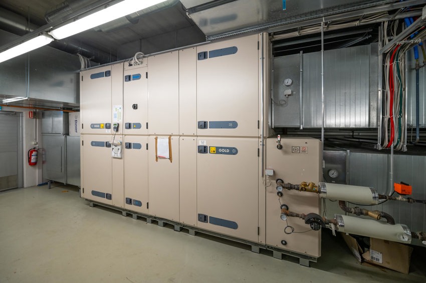 Hallin molemmilla pitkillä sivuilla, eli A- ja B-puolella, sijaitsevissa konehuoneissa toimivat silloisen kokovalikoiman suurimmat GOLD-koneet – yksi GOLD D RX 80 per puoli. Kyseessä mallirevisio D, ja siitä pyörivällä LTO:lla varustetut laitteet, ilmamäärältään noin 6 m3/s per kone. Nykyisin konevalikoima on kasvanut vielä malleilla GOLD 100 ja 120. Nykyään suurimmalla GOLDilla päästäänkin noin 9 kuution ilmavirtaan.