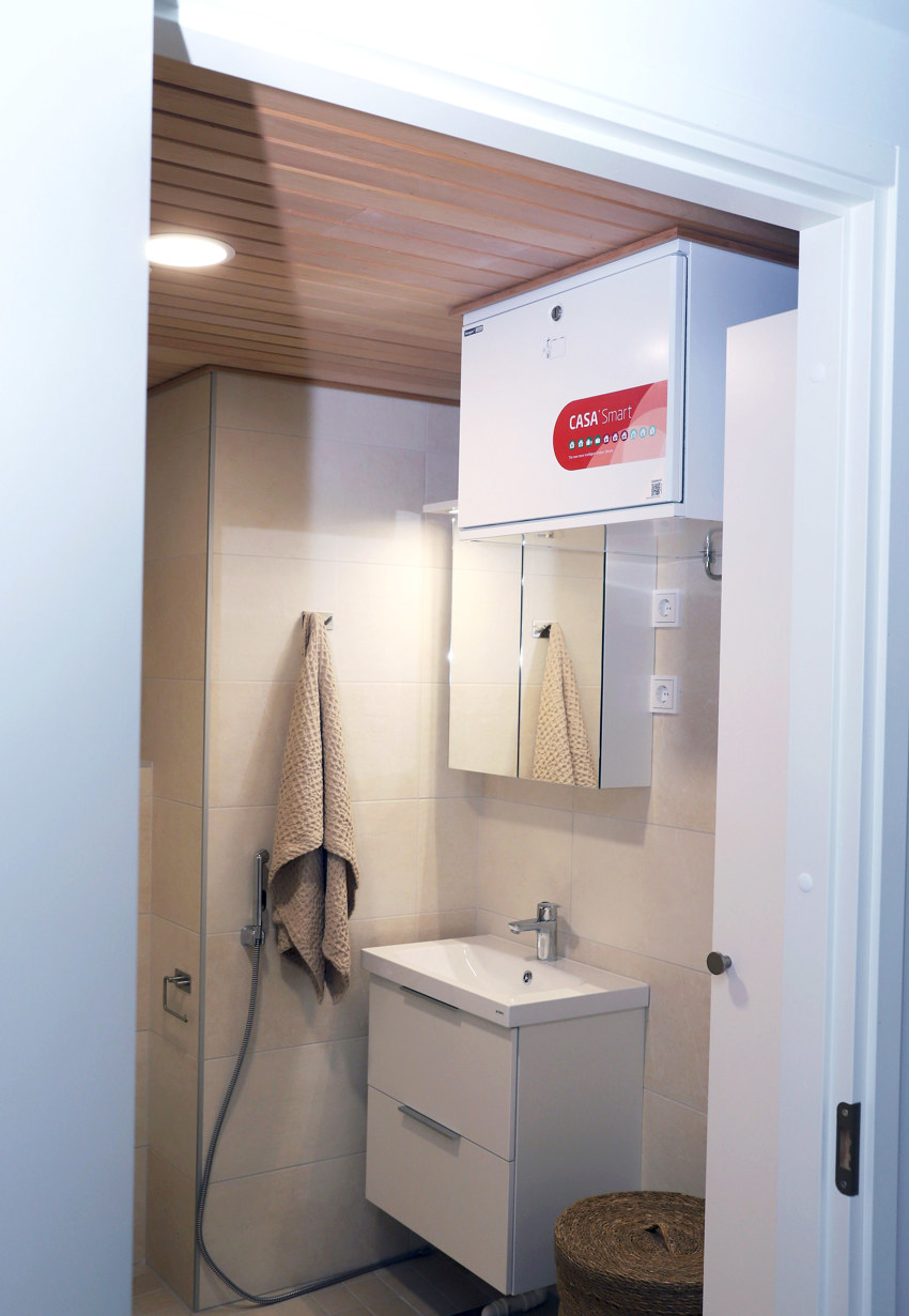 Ylimpien kerrosten asunnoissa on Swegonin CASA-laittein toteutettu asuntokohtainen ilmanvaihto, mikä lisää asuinmukavuutta ja auttaa A-energialuokan tavoitteisiin pääsyssä.