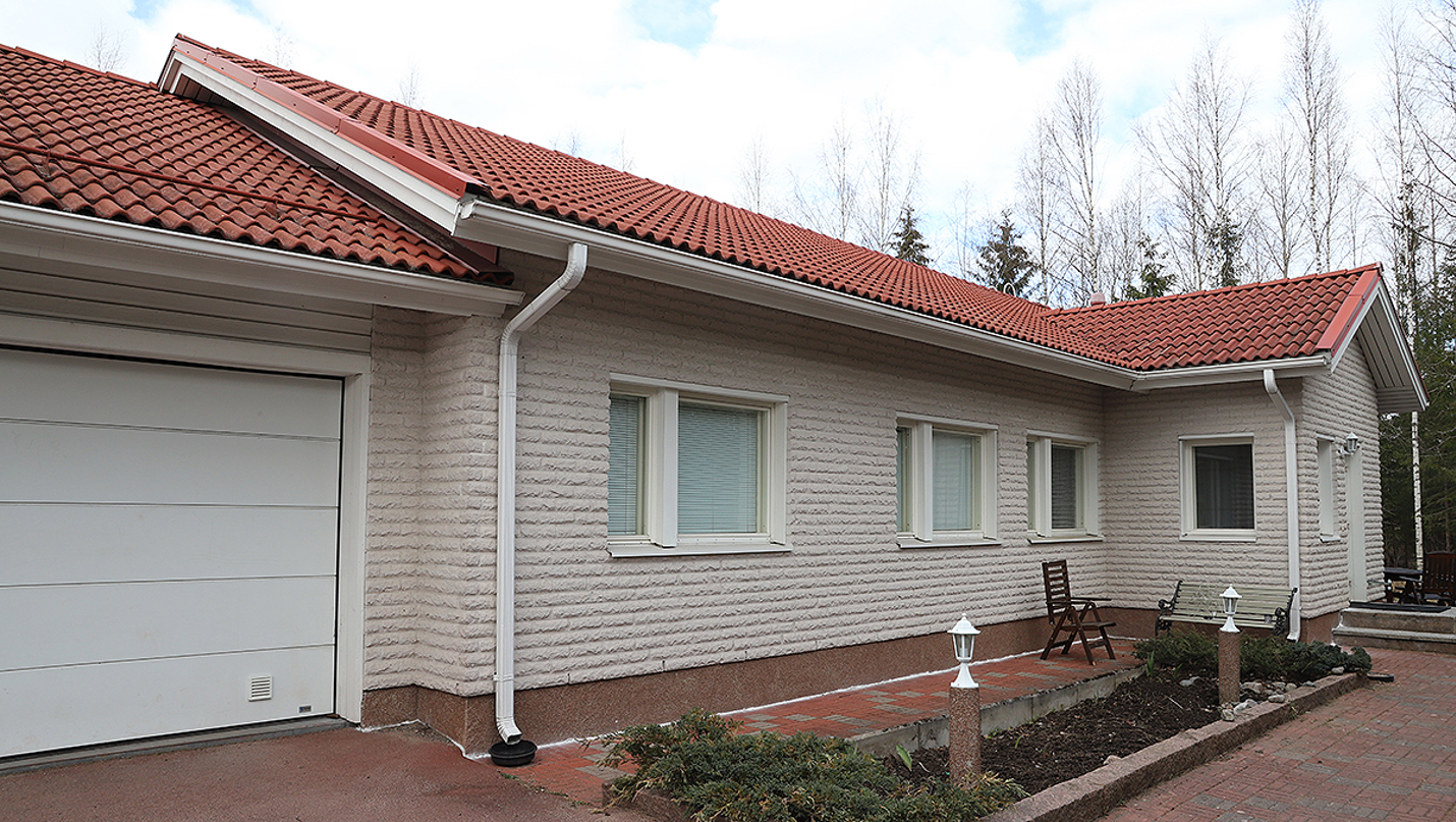Hyvärien koti sijaitsee erinomaisella paikalla. Automyyjänä toimivan Jarin työpaikka on vain noin puolentoista kilometrin päässä, ja Lahden keskustaankin on vain viitisen kilometriä. Liikenteen melu ei kiusaa, sillä metsäinen tontti sijaitsee päättyvän tien päässä.