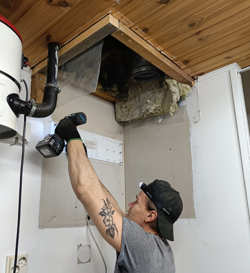 ”Alkuperäisen ilmanvaihtokoneen ilmamäärät eivät tahtoneet riittää, ja laite kulutti paljon energiaa koko ajan”, Jari perustelee.