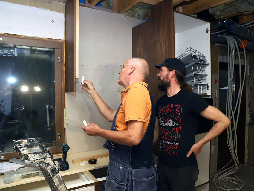 Aikatauluun vaikutti myös se, että urakka hoidettiin päivätöiden ja muun elämän ohessa. Purkutyöt ja kaappien asennustyöt Dahlsten hoiti yhdessä isänsä kanssa.