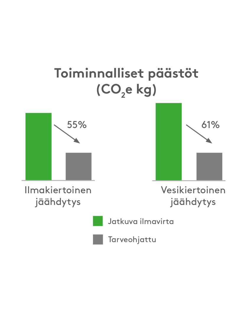 Kiinteistöjen osuus kaikesta energiankulutuksesta on huomattava, ja lämmitys, jäähdytys ja ilmanvaihto ovat suurimpia energiankuluttajia. Tarveohjattu ilmanvaihto on avainasemassa energiankulutuksen vähentämisessä. Investoimalla tarveohjattuun sisäilmastoon voit saavuttaa merkittäviä energiansäästöjä. WISEn avulla voit seurata, miten rakennus toimii käytön aikana, jopa etänä, ja lisäksi voit säästää huomattavasti energiaa: