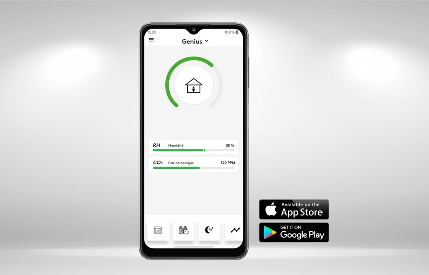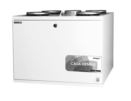 L’appli Swegon CASA permet aux occupants d’utiliser toutes les fonctions de régulation à partir d’un smartphone. Les utilisateurs peuvent accéder à plus d’informations sur la qualité de l’air de l’habitation ainsi qu’à des instructions et conseils précieux sur la ventilation (panneau de commande Swegon Genius requis).