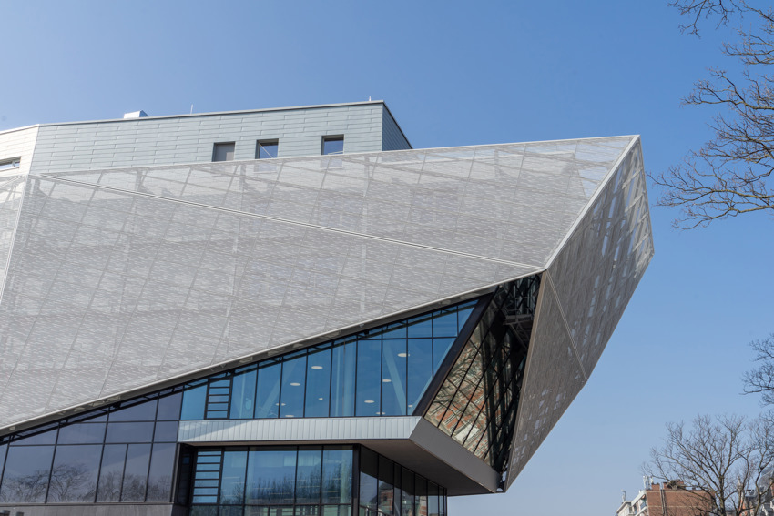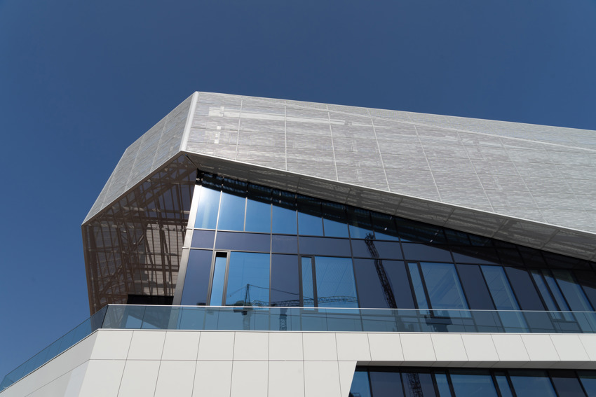 Compte tenu du volume important, le défi pour les concepteurs, architectes et bureaux d’études se situait non pas au niveau du chauffage, mais du refroidissement. A cet effet, la première spécificité technique mise en place, a été la double peau qui entoure l’édifice, pour lui permettre d’atteindre des besoins énergétiques proches des bâtiments passifs.