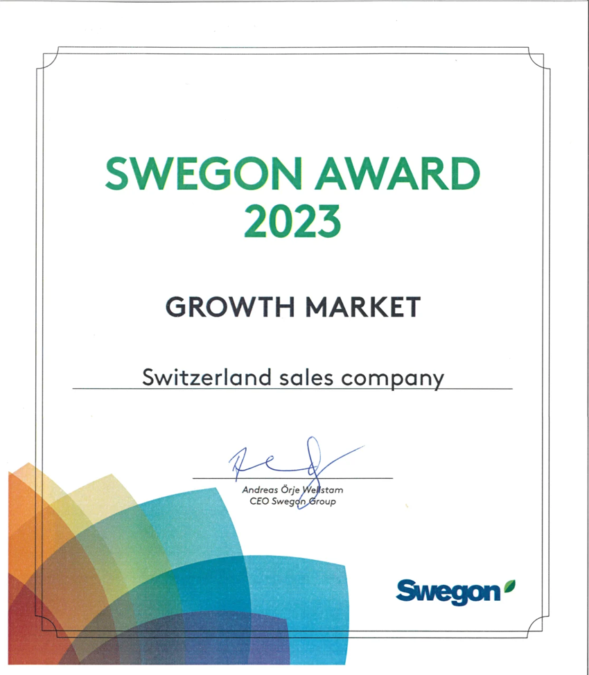 Notre organisation Suisse vient de recevoir le prix récompensant le pays avec la meilleure croissance au sein du groupe Swegon pour l’année écoulée. Ce prix est le résultat de plusieurs années d’efforts de consolidation dont les effets ont été considérablement ralentis par les impacts de la pandémie. Parmi les efforts prioritaires qui visaient avant tout à renforcer nos liens privilégiés avec notre clientèle, il faut citer en particulier : le renforcement de la qualité de notre service après-vente, le déploiement de nouveaux processus et outils digitaux, le repositionnement complet de la stratégie ainsi que l’établissement d’une vision du développement de la société, à laquelle chaque membre de l’équipe puisse s’identifier. Swegon Suisse est fière de ce prix qui est avant tout une très belle reconnaissance de l’engagement de tous les instants, des compétences et de la résilience de chacune et chacun.