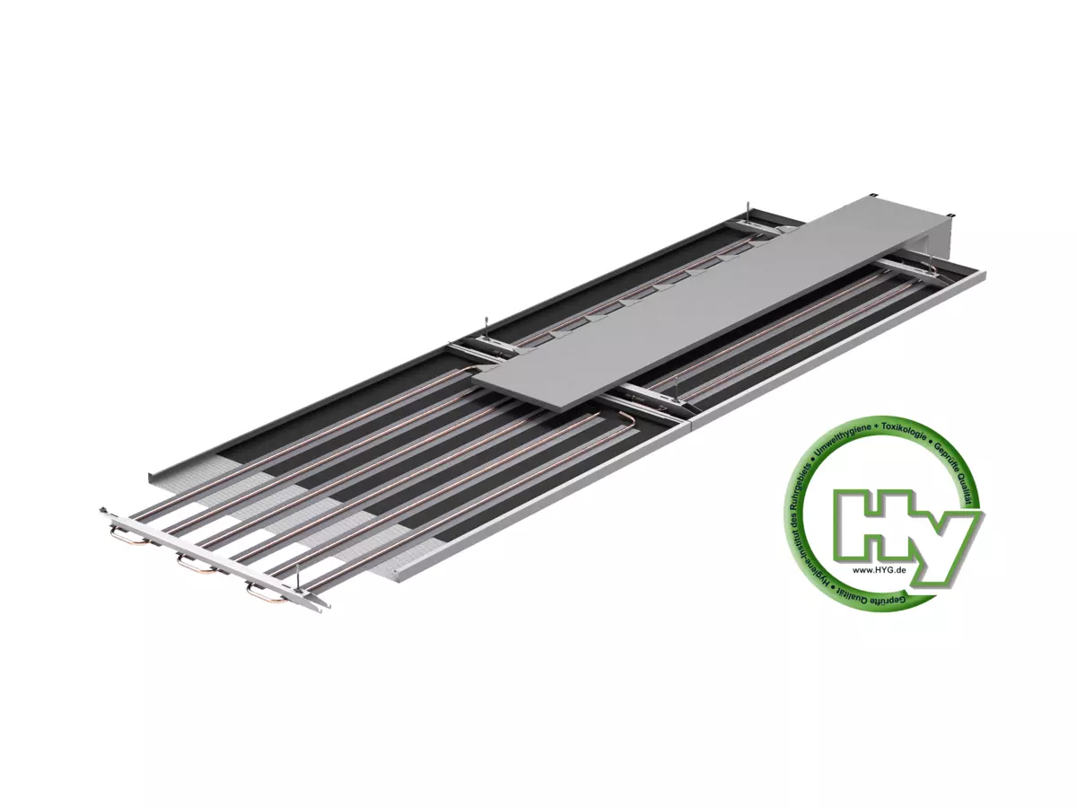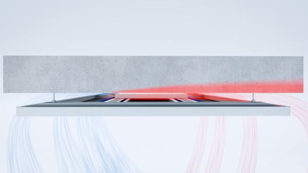 Ce système de plafond rayonnant intègre la masse de stockage du bâtiment pour la dissipation des charges thermiques. Il en résulte une baisse significative des coûts d’exploitation et des émissions de CO2.