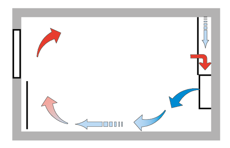 Les solutions d'alimentation en air les plus courantes dans les locaux pour une ventilation de confort sont spécifiées ci-dessous. Les charges de refroidissement maximales spécifiées se rapportent à la capacité de refroidissement par voie aérienne et tiennent compte de l'accumulation dans la structure du bâtiment.
