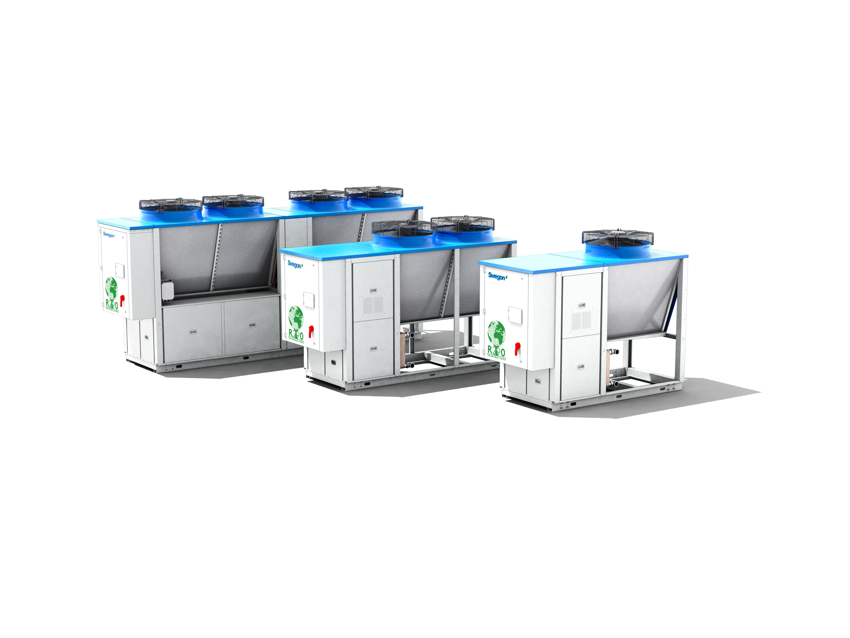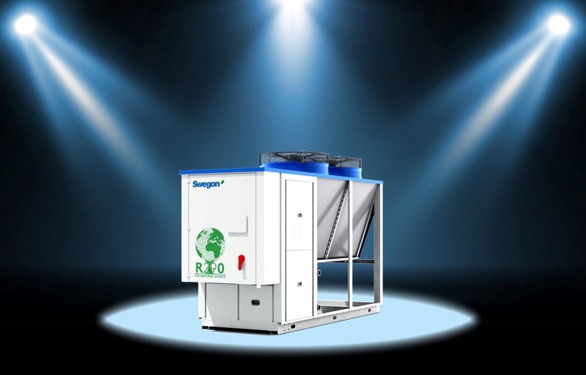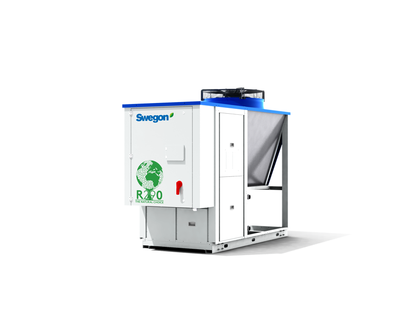 La machine sur notre stand est une toute nouvelle série de refroidisseurs de liquide et pompes à chaleur signée Swegon. Une série conçue pour allier à la fois efficacité et durabilité, avec l'utilisation du gaz naturel propane (R290), au potentiel de réchauffement planétaire fort négligeable (3).