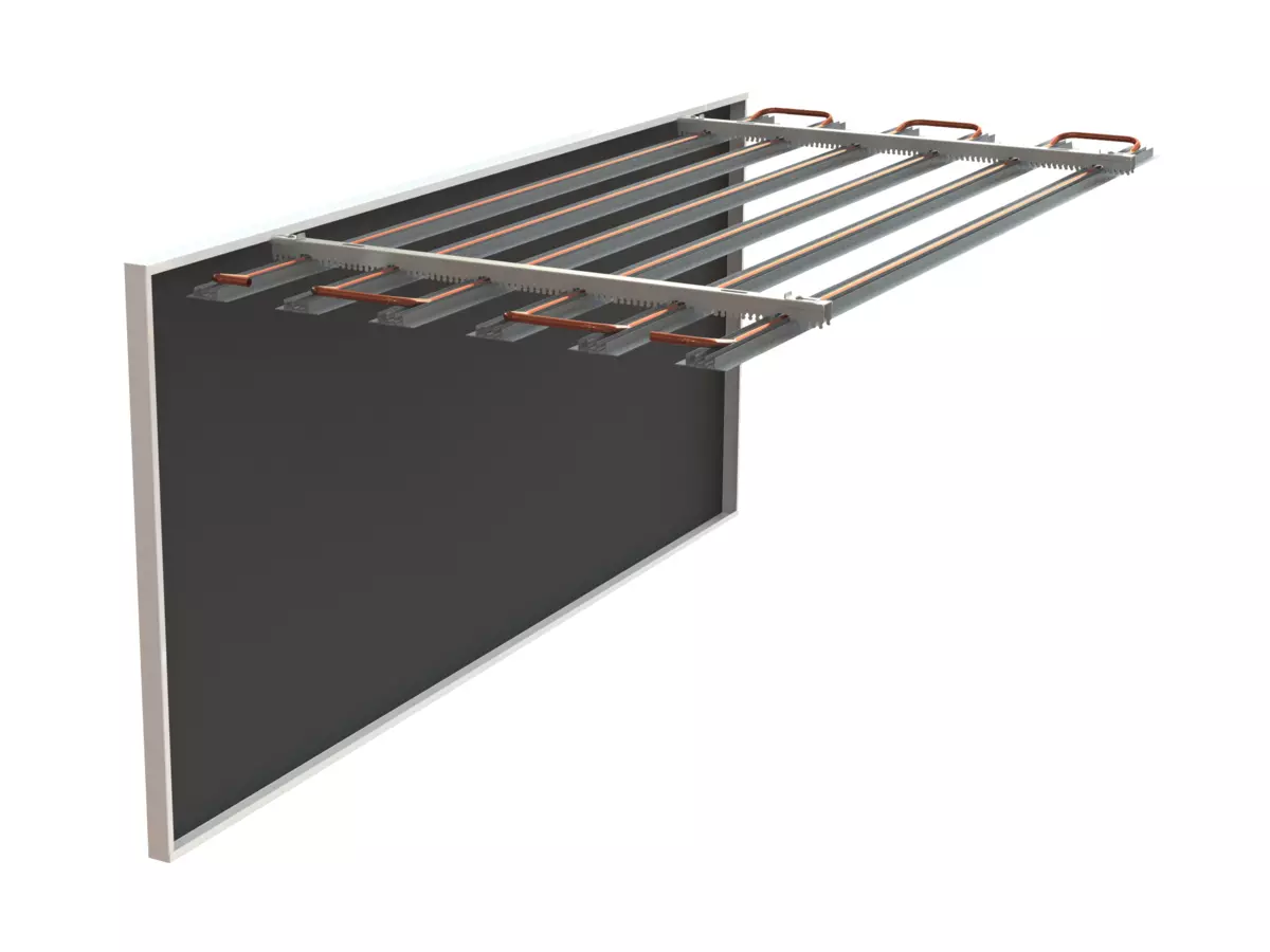 Le registre du SPECTRA M est idéal pour la réhabilitation de bâtiments dans lesquels il est prévu d’activer ultérieurement des plafonds métalliques déjà en place. De plus, il peut être fixé et raccordé hydrauliquement indépendamment des panneaux. Cela permet aussi d’utiliserle registre comme solution de chauffage pendant le chantier.