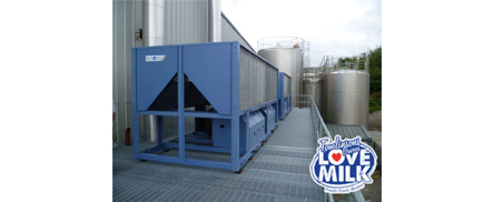 La laiterie possède aujourd'hui un système de refroidissement d'une puissance frigorifique minimale de 465 kW pour chaque unité, avec un niveau sonore inférieur à 87 dBA, une température de fonctionnement de -2°C et un ratio d’efficacité énergétique supérieur à 3.26.