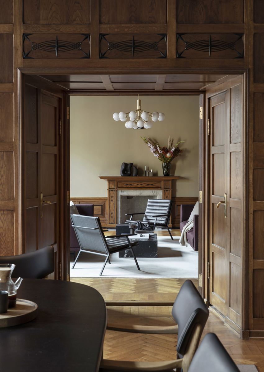 Des matériaux durables tels que le marbre, le granit et la brique norvégiens ont été utilisés lors de la rénovation, tandis que des détails historiques tels que les fresques ont été rafraîchis. Le bâtiment a été conçu par deux des architectes les plus célèbres de Norvège (Arnstein Arneberg et Magnus Poulsson), qui ont également dessiné l'énorme lustre qui pend à travers les 7 étages.