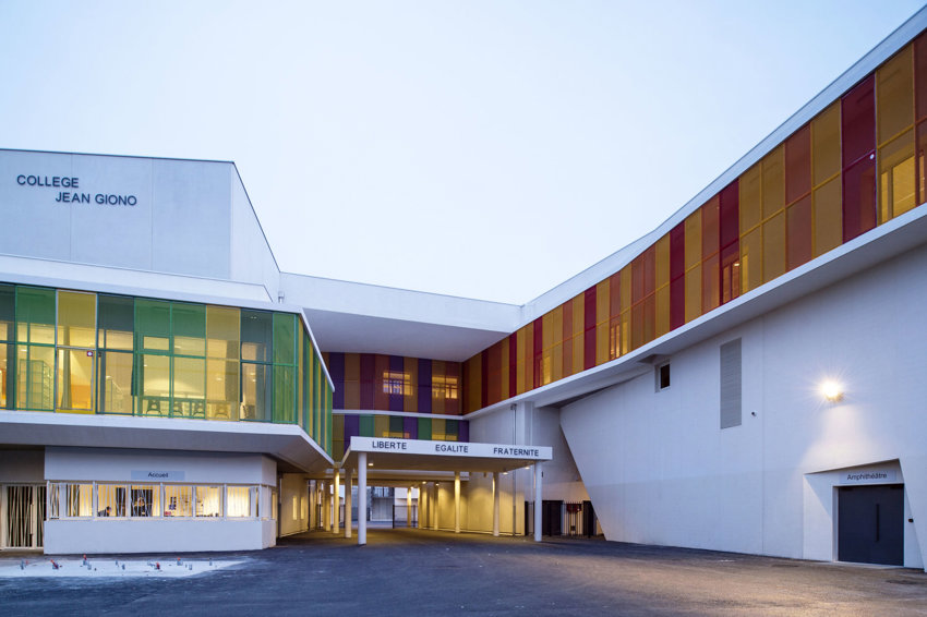 Bâtiment anciennement vétuste et trop petit, le collège public Jean Giono a été entièrement repensé, s’inscrivant dans le Plan Charlemagne » du Conseil départemental. Ce plan est dédié à la construction, la rénovation et l’équipement des collèges. Inédit, il vise des constructions durables et d’importants travaux de rénovation pour l’amélioration du cadre de vie et ce, dans une cinquantaine d’établissements à horizon 2027.
