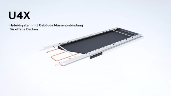 Il sistema ibrido U4X è un sistema climatizzante multifunzionale, ideale per soddisfare i crescenti requisiti degli edifici moderni. La particolarità di U4X è il coinvolgimento della massa dell’edificio attraverso lo sfruttamento diretto del soffitto in calcestruzzo. Il risultato è una capacità supplementare di accumulo della massa, oltre alla classica capacità di raffreddamento dell’acqua e dell’aria. Ne consegue una notevole diminuzione dei costi di esercizio e delle emissioni di CO2.