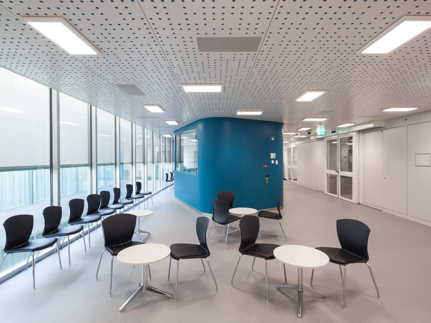 Nel nuovo edificio sono state utilizzate soluzioni per controsoffitti climatici: il soffitto radiante metallica A11-C di circa 1100 m2 e il soffitto radiante in cartongesso VARICOOL AP di 940 m2.