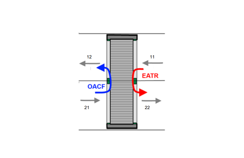 EATR defines how much extract air leaks to the supply air. OACF defines the ratio of outdoor air to supply air and is a measure of the leakage between outdoor and exhaust air.​