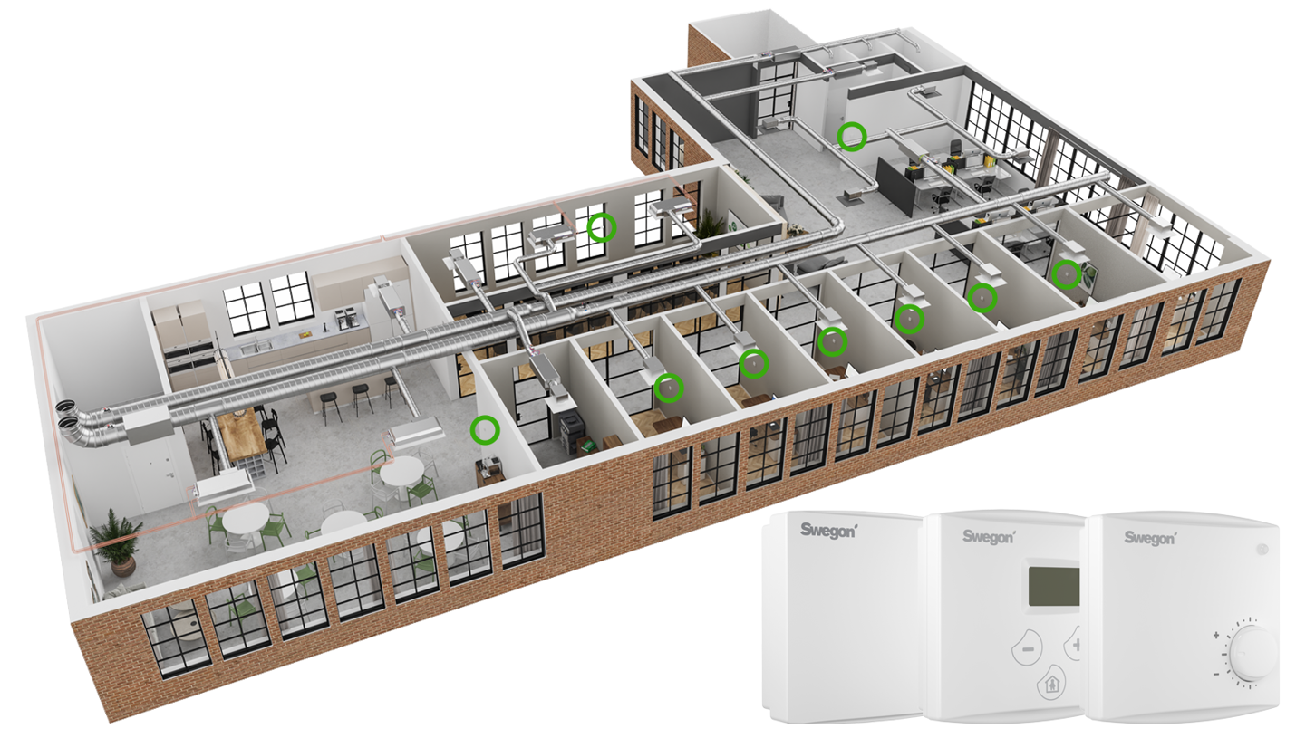 The solution is suitable for smaller projects with requirements for indoor climate control in individual rooms, as well as entire properties. The adaptable solution offers efficient installation and each room may either be fully operating as a stand-alone unit, or simply be integrated with a building management system.
