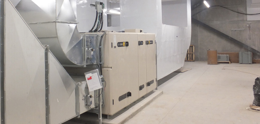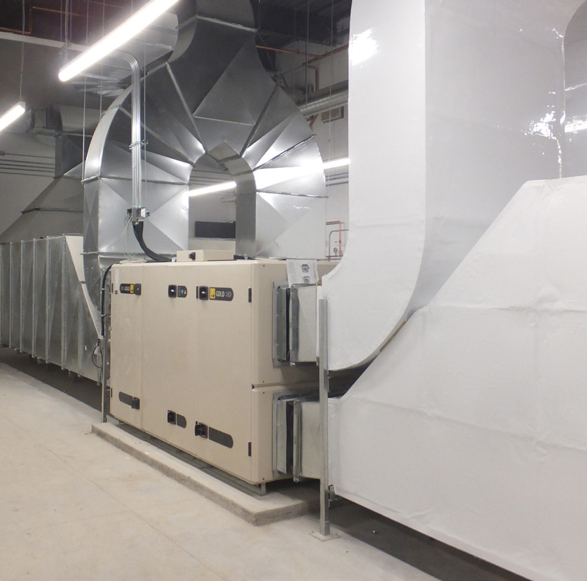 Two GOLD RX 30 units were installed side-by-side and connected to a common air distribution system. The unit controls were configured for a lead lag operation as required by the Building Management System (BMS). This control sequence allowed the units to run alternately to extend the life of the units and allowed the backup unit to be tested monthly. Unit and system maintenance along with filter changes can be done without affecting the system’s operation and reliability.