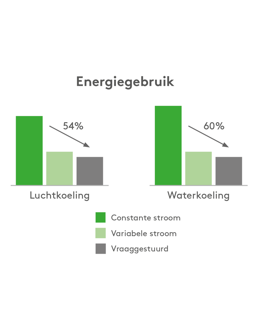 Minder energieverbruik betekent ook een lagere klimaatvoetafdruk. Met een vraaggestuurde oplossing kan de CO2-uitstoot met maximaal 61% worden verminderd, waardoor het een effectieve manier is om bij te dragen aan een duurzamere toekomst.