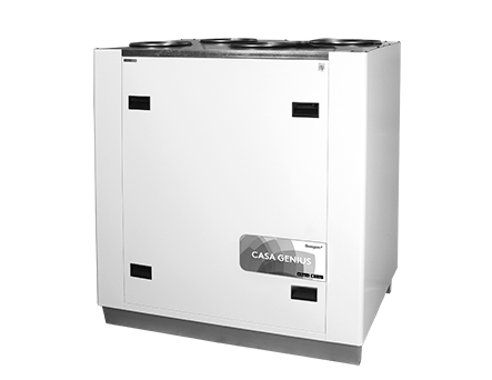 Ved hjelp av styresystemet Swegon CASA Genius kan beboerne overvåke kvaliteten på inneluften (RH, CO2, VOC, °C), styre ventilasjonen etter behov eller la den intelligente styringen regulere ventilasjonen automatisk. Samtidig sparer det energi og garanterer helt automatisk sunn inneluft under alle forhold.
