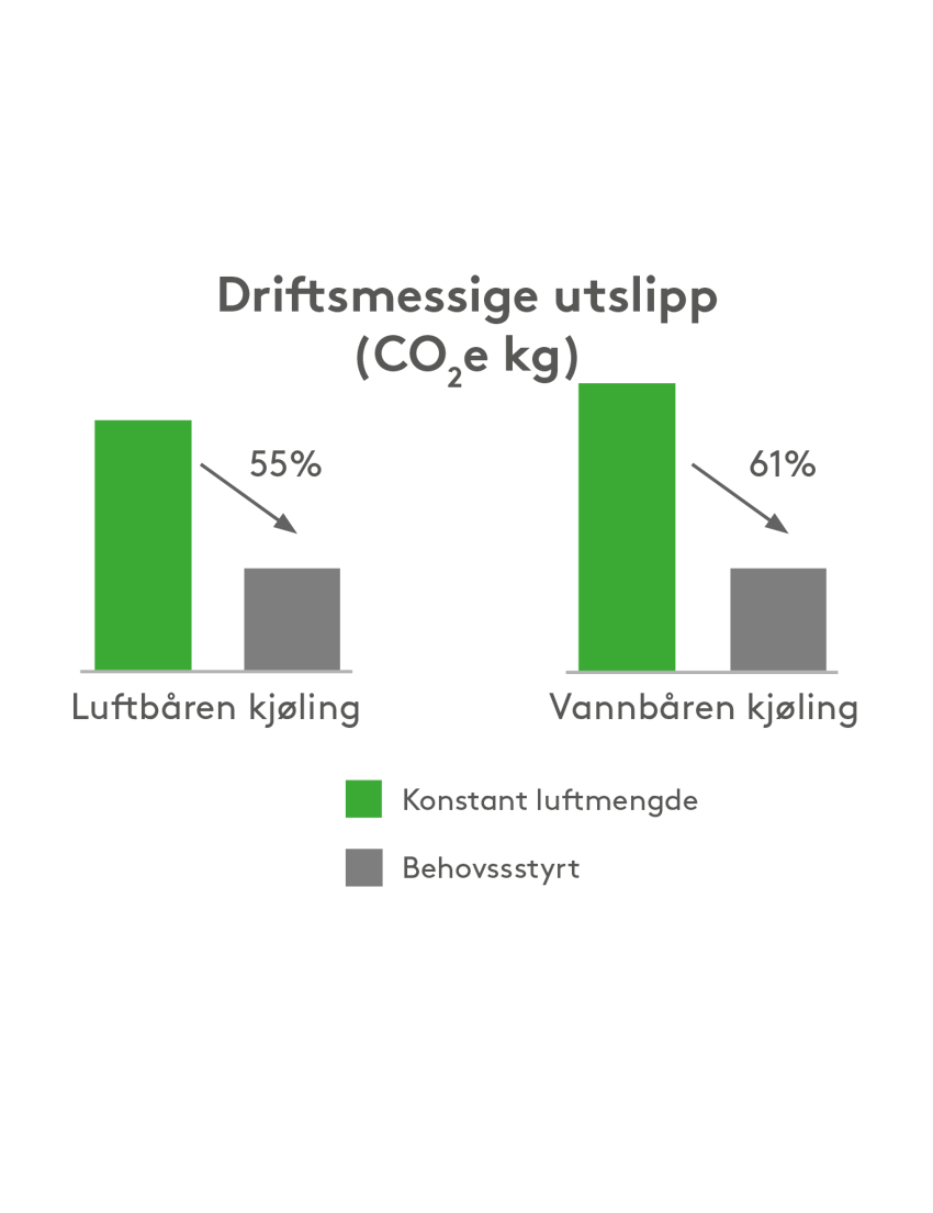 Eiendom står for en betydelig andel av alt energiforbruk, der oppvarming, kjøling og ventilasjon utgjør en stor del. Behovsstyrt ventilasjon er en nøkkel til å redusere energiforbruket. Ved å investere i et behovsstyrt inneklima kan du oppnå betydelige energibesparelser. Med WISE kan du følge opp hvordan bygningen faktisk yter når den er i drift, til og med på avstand, i tillegg til at du kan spare mye energi: