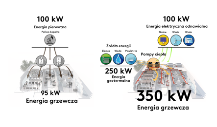 Podczas gdy nowoczesne kotły kondensacyjne przekształcają 100 kW energii pierwotnej w 90-95 kW energii grzewczej, tracąc 5-10% energii, Swegon oferuje innowacyjne i zrównoważone rozwiązania, które wytwarzają ponad 140 kW energii grzewczej ze 100 kW energii pierwotnej lub ponad 350kW energii grzewczej ze 100 kW energii elektrycznej, która może być produkowana ze źródeł odnawialnych.