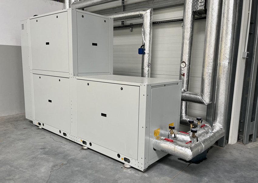 AnalizujÄ…c bilans energetyczny caÅ‚ego ukÅ‚adu zdecydowaliÅ›my o zastosowaniu jednostki multifunkcyjnej dziaÅ‚ajÄ…cej w systemie 4-rurowym, która umożliwia niezależnÄ… produkcje ciepÅ‚a i chÅ‚odu. Jednostka zostaÅ‚a połączona z nagrzewnicÄ… wstÄ™pnÄ… w centrali wentylacyjnej tak aby umożliwiaÅ‚a odzyskiwanie ciepÅ‚a z procesu chÅ‚odzenia na potrzeby ukÅ‚adu wentylacji. Pozostałą ilość energii grzewczej potrzebnej do ogrzania powietrza pokrywa kotÅ‚ownia. Takie rozwiÄ…zanie daje  elastyczność, ponieważ podczas braku zapotrzebowania na chÅ‚odzenie, jednostka ma możliwość pracy w trybie grzania jak powietrzna pompa ciepÅ‚a.