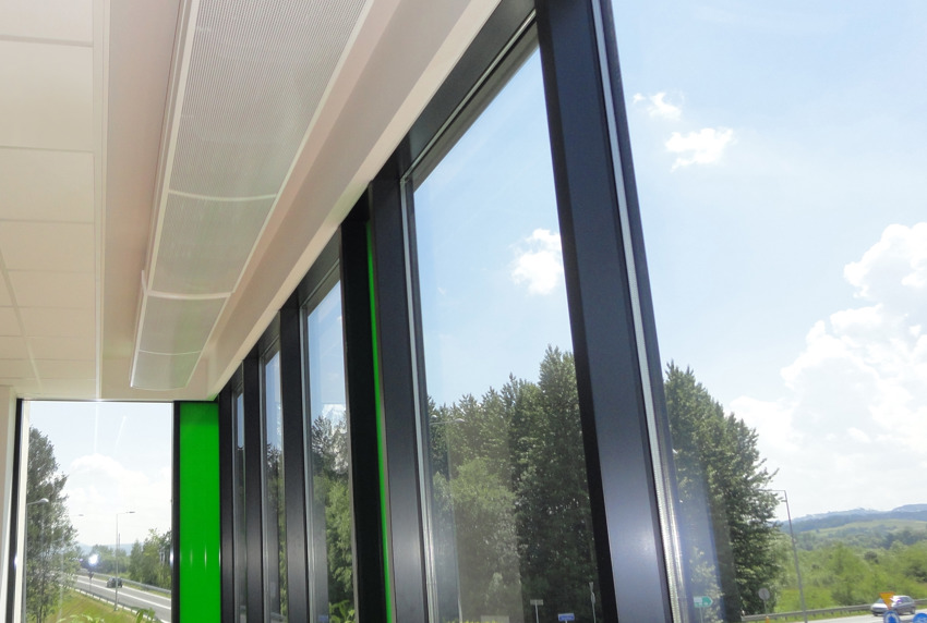 Do pracy systemów moduÅ‚ów sufitowych wykorzystana zostaÅ‚a pompa ciepÅ‚a z dolnym źródÅ‚em w postaci odwiertów pionowych.