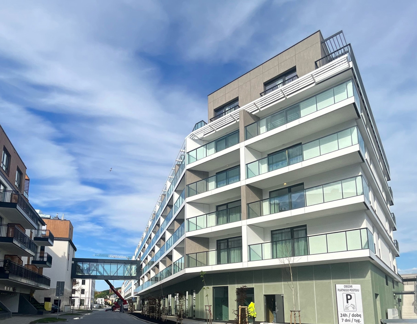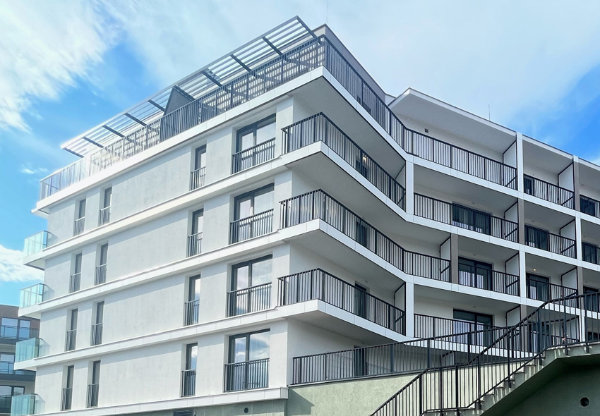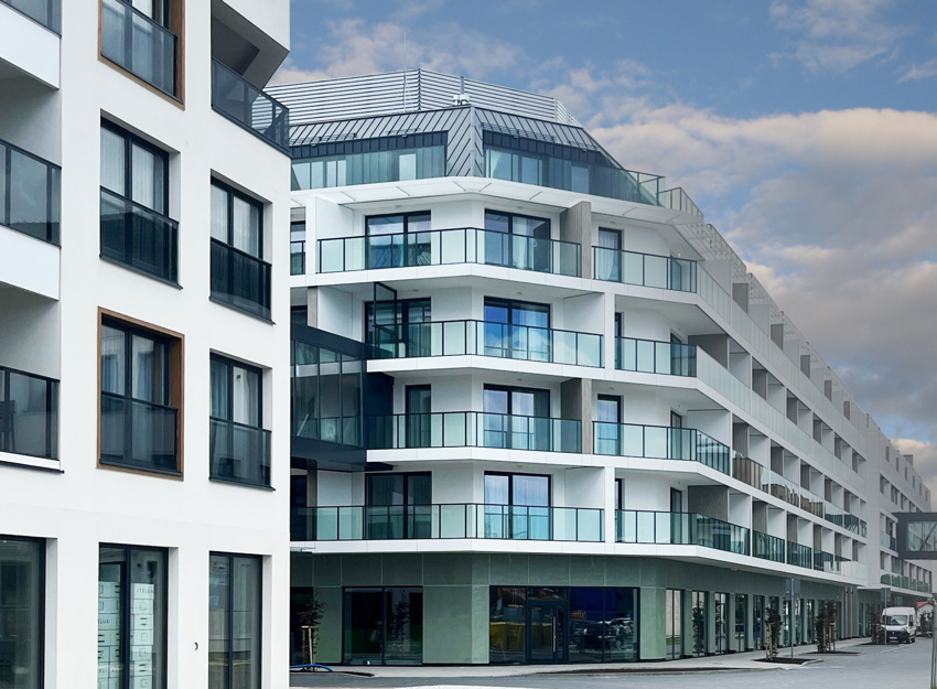 W pierwszym etapie oddany zostanie do użytku reprezentacyjny, piÄ™ciopiÄ™trowy apartamentowiec, którego trzy części ukÅ‚adajÄ… siÄ™ na planie litery U.