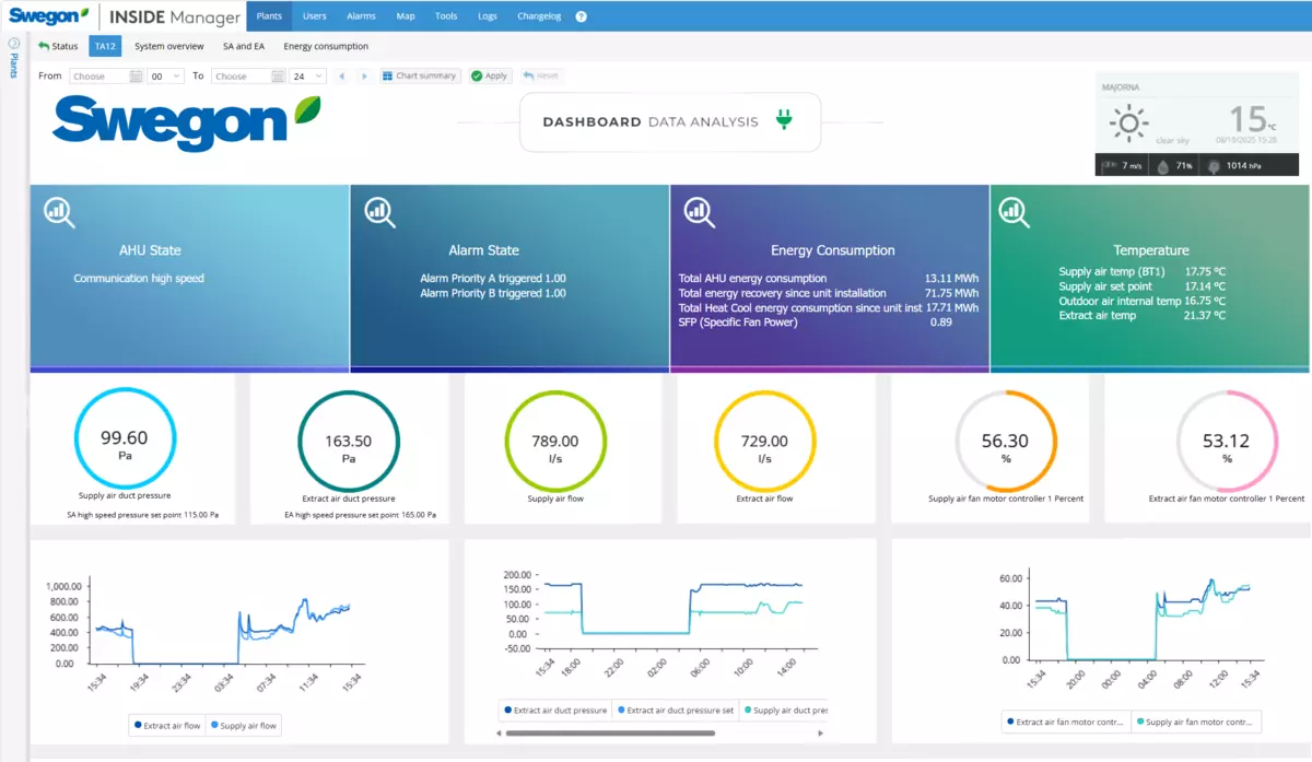• Access to your plant on the go via the Swegon INSIDE Manager App (iOS & Android)