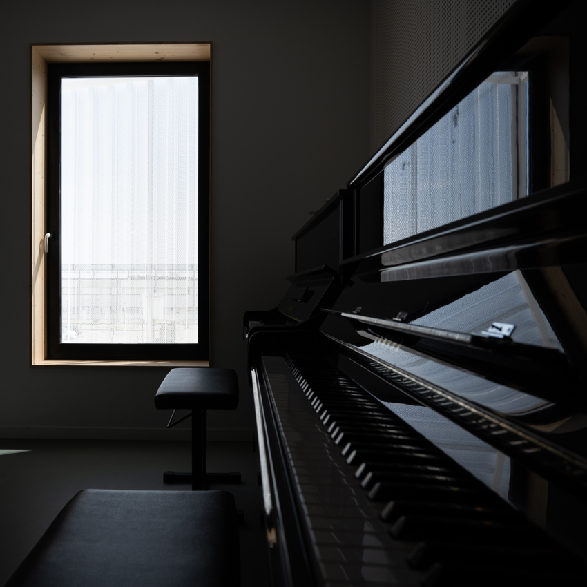 A total of 3 400 m2 floor area is divided into musical training facilities, 26 studios for individual sessions, 3 dance academies of 150 m2 each and an auditorium for about 100 people. There is also a large staircase that can either be used as bleachers or a stage, and to this there are open spaces for reception areas etc.