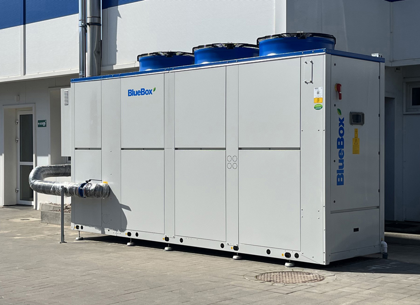 Due to the characteristics of the industrial activities, the air handling units have been delivered without heat exchangers, normally highly recommended from an energy utilisation perspective. That in turn, explains the need for external units for heating the supply air. We delivered heat pumps of model ZETA Rev and TETRIS W Rev, both from our BlueBox range. However, the technological process also has a clear demand for cooling all year round.