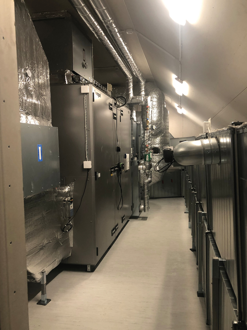 As the attic was the only available space for our air handling units it was decided to select two smaller Swegon GOLD RX units per machine room and run them in a parallel manner, serving the same ductwork.