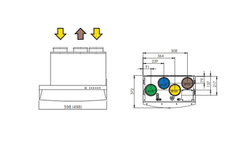 CASA R3 & Jazz spiskåpan installeras i stället för kryddhyllefläkten ovanför spisen. De gamla frånluftskanalerna kan utnyttjas och anslutas till ventilationsaggregat. Nya kanaler monteras för uteluft och tilluft.