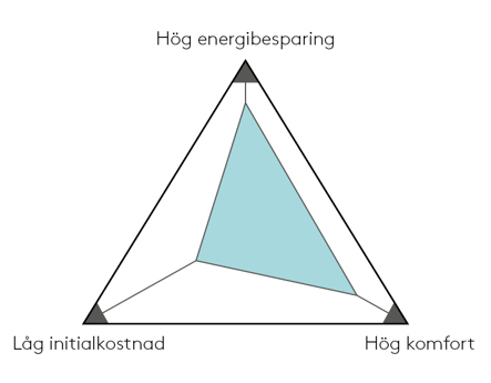Varje projekt, oavsett om det gäller nyproduktion eller renovering, har sin specifika kravbild och det gäller att hitta den systemlösning som passar bäst till det aktuella projektet. Idealet vore givetvis ett system som är oslagbart vad gäller både energibesparing och komfort, samtidigt som det är billigast, men i praktiken måste det alltid göras en avvägning mellan dessa faktorer. Vad är viktigast i ditt projekt?
