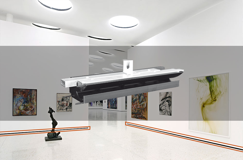 - Jetspridning via golv skyddar utställningsföremål på väggar
