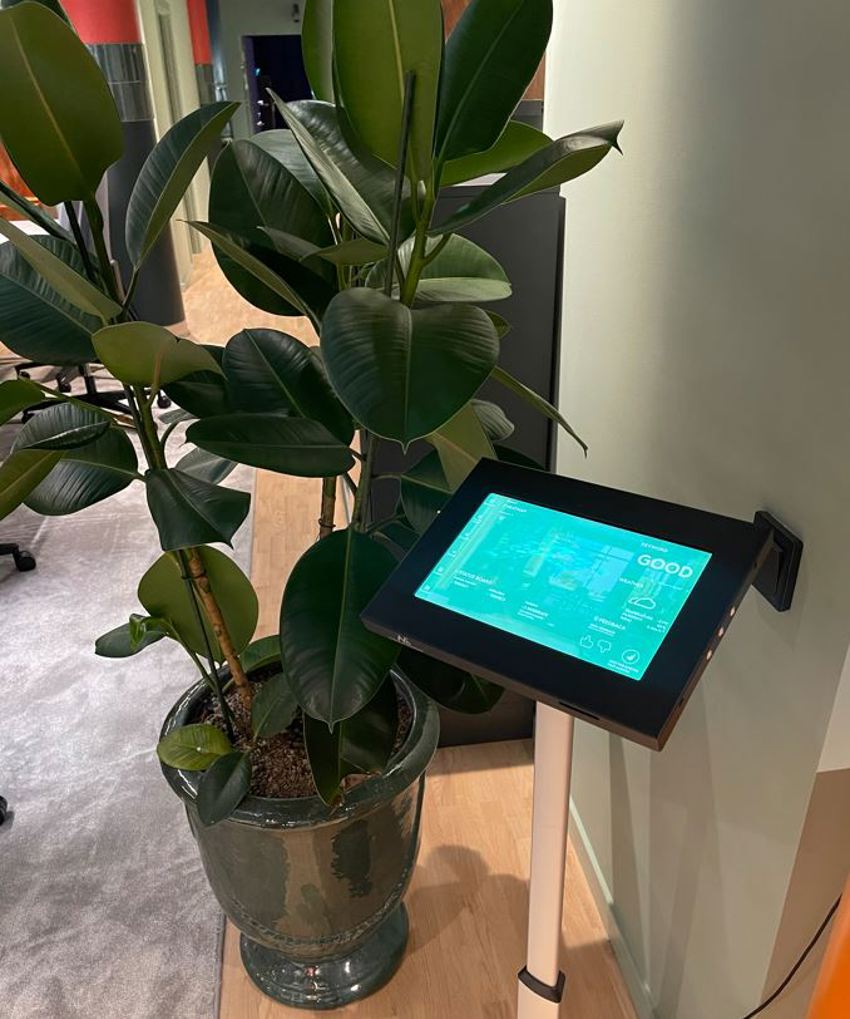 De som är på kontoret kan enkelt skaffa sig en bild av inomhusklimatet och ge sin feedback direkt på skärmen eller via de QR-koder som finns utplacerade runtom på kontoret.