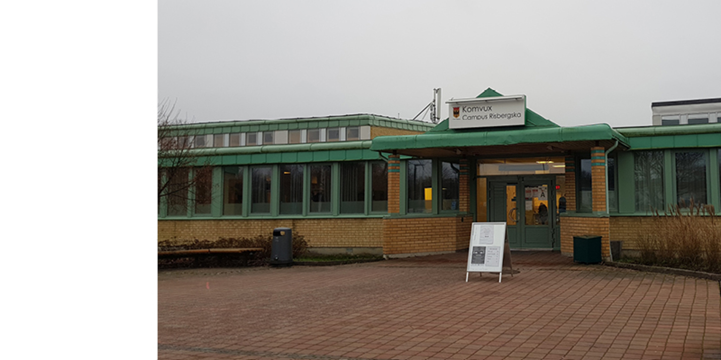 Campus Risbergska ligger i stadsdelen Rosta i västra Örebro, mitt i en naturskön miljö med Svartån rinnande intill skolgården. Byggnaden, som är från 1960-talet, har tidstypiskt gult tegel med koppardetaljer. Skolan var tidigare ett gymnasium men har efter en totalrenovering fräschats upp och i skolan drivs nu verksamhet för komvux- och undervisning av SFI-elever.