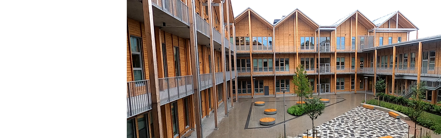 Hållbarhet är en viktig del i den nya skolan. Genom en tillgänglig lärmiljö och byggnation i trä och naturmaterial skapas en social hållbarhet utifrån elevers mående.