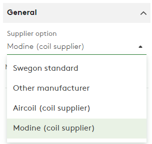 Modine coils is now available for Swedish market in AHU design. Two coils, heating water (TBLA) and cooling water (TBKA). Selection of Modine is available in supplier option.