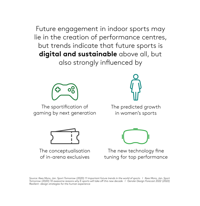 Sources: Abraham, Jonalyn. Gensler (2021) Designing performance centers to promote well-being for athletes I Internicola, Dorene. Reuters (2013) Outdoor exercisers can reap unexpected benefits by moving indoors