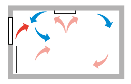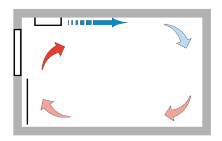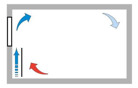 It is important to recognise the case of supply air and window temperature. In situations where there is a risk of both these temperatures being lower than the ambient temperature, there is a also a risk of air plunges in the zone closest to the window (1 to 2 m).