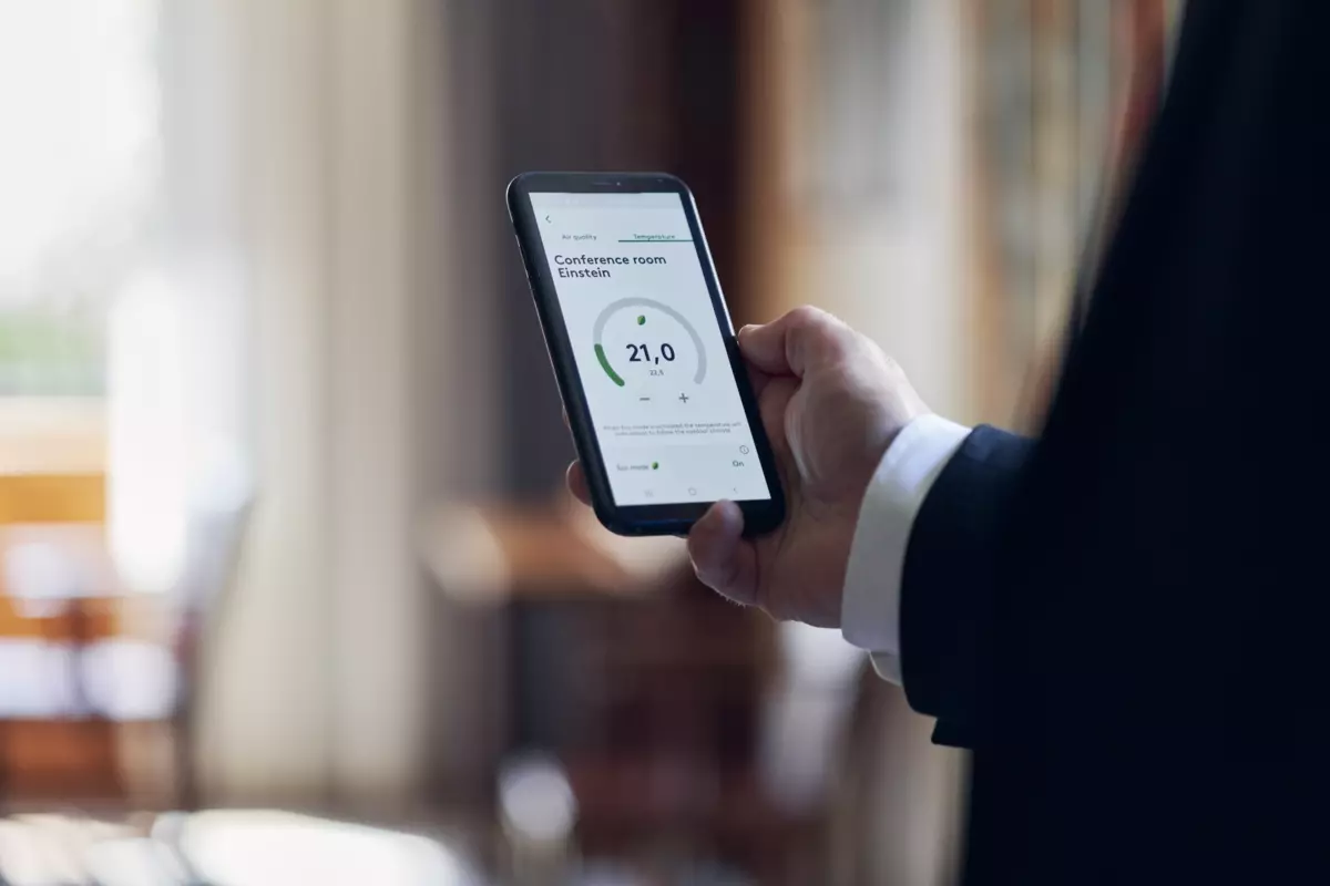 The temperature we prefer at home or in the office is highly individual and there is no specific temperature that makes everyone satisfied. Therefore it is not an optimal solution to set the same temperature for an entire office space. The Swegon INSIDE App allows users to easily adjust the temperature of their room without upsetting the colleague in the next room. The app is easy to manoeuvre and can be used from anywhere. However, a registered presence in the room is required for the temperature change to be triggered.