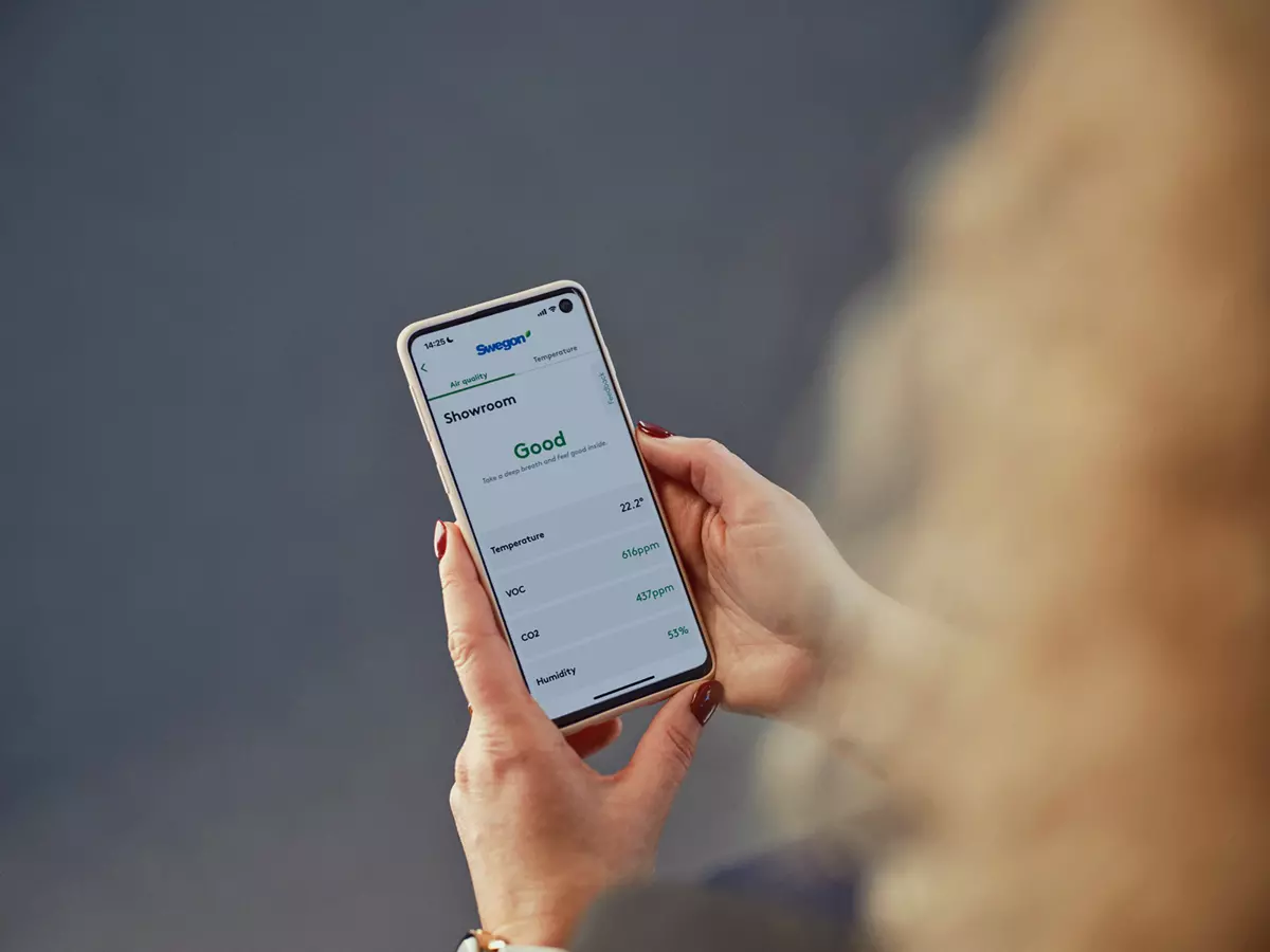The INSIDE App from Swegon is an additional service to our Swegon WISE system for a demand-controlled indoor climate. The app gives a view of the current indoor climate by visualising a set of parameters, e.g. temperature and air quality. People inside the building with access to the app have the possibility of making temperature adjustments, within a predecided span of a few degrees set in the WISE system.