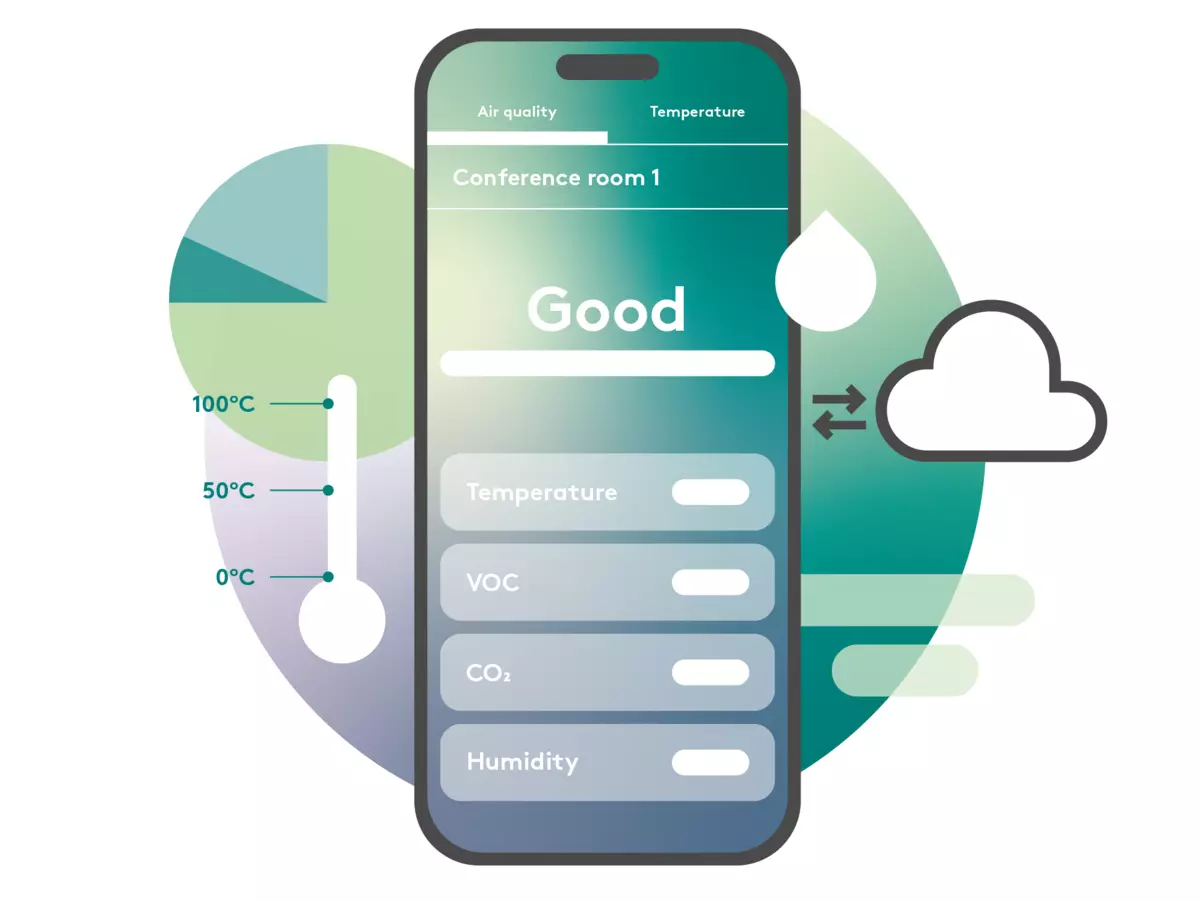 Visualise the room's air quality and set the temperature directly from the phone.